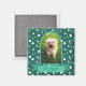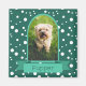 Encadrez une photo verticale de votre animal de compagnie dans une arche classique en turquoise avec une bannière pour son nom. L'Arrière - plan est pois blanc en turquoise.