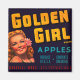 étiquette vintage de caisses de fruits pour les pommes de marque Golden Girl de Californie.