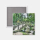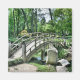 Un pittoresque pont en arc japonais s'étend gracieusement sur un étang tranquille, dont le design élégant se reflète dans les eaux calmes en contrebas. Entouré d'une végétation luxuriante, le pont englobe la beauté intemporelle de l'esthétique des jardins japonais.