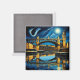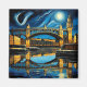 A.I.créé l'impression d'une scène nocturne surréaliste et vibrante représente un pont lumineux avec des bâtiments colorés réfléchis sur une rivière, sous un ciel étoilé et lumineux.