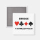 Si vous jouez beaucoup de bridge, vous comprendrez que le jeu de bridge est de se souvenir de ce que l'enchère était, quelles cartes ont été jouées, et quelles cartes restent à jouer. Que vous soyez déclarant ou défenseur, le jeu du pont nécessite beaucoup de concentration. Les joueurs de pont apprécieront cet aimant avec les quatre costumes de carte ainsi que le truisme de pont suivant/dupliqué disant : "Bridge - A Game Of Focus".