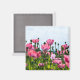 Ce design présente une belle image d'un champ de pavots roses en fleurs. La couleur vive des fleurs semble incroyable face au ciel éclairé derrière.