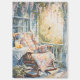 Cette confortable scène de porche saisit un moment d'été intemporel, avec une chaise à bascule en bois vintage drapée d'une courtepointe colorée sous une délicate glycine suspendue. La lumière du soleil danse à travers le patiné porche bleu, où un verre de limonade fraîche repose sur une table recouverte de dentelle, et un papillon flotte paresseusement dans l'air doré. Le doux jeu de la lumière et de l'ombre évoque une atmosphère paisible et nostalgique, parfaite pour ceux qui chérissent la lenteur de la vie et le charme de la campagne. Idéal pour apporter chaleur et sérénité à n'importe quel espace, cet article vous invitations à vous imaginer enroulé avec un bon livre, savourant la beauté tranquille de la nature et de la maison. L'aquarelle douce apporte une touche éthérée et romantique, ce qui en fait un bel accent pour la ferme, le cottagecore ou le décor chic et désuet. L'IA a généré des oeuvres d'art.