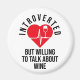 Aimant frigo amusant qui comporte le texte "Introverted, mais prêt à parler du vin". Cet aimant fait le cadeau parfait pour les personnes qui sont introvertis mais aussi aiment le vin.