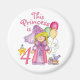 Quatrième anniversaire princesse mignonne portant un casquette en forme de cône (hennin) avec des ballons dans ce plaisir médiéval thème fille anniversaire avec le texte qui dit "I'm 4" en rose.