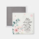 L'aimant de citation inspirant représente un beau design floral avec des fleurs roses et des feuilles bleus. Il présente la Bible Verse Proverbes 31:25, "Elle est vêtue de force et de dignité et elle rit sans crainte de l'avenir." _