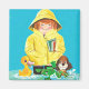 Artist : Jack Weaver | Girl with raincoat se trouvait dans puddles with frog, dog, and duck