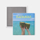 Cet aimant frigo - Better in the Bahamas - a une photo prise sur le Cabbage Beach de Paradise Island de deux mains tenant chacune un demi-ananas rempli de punch au rhum. Les ananas se tiennent contre une mer bleue et un ciel bleu. Le texte est jaune vif.