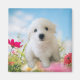 The design depicts a bichon puppy in a meadow looking angelic.