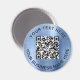 Aimant promotionnel simple pour votre entreprise ou organisation avec un arrière - plan en faux métal bleu brossé. Ajoutez votre code ou logo QR et deux lignes de texte personnalisé, comme votre nom d'entreprise, votre slogan, merci ou laissez vide.