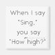 Ce drôle d'aimant dit "Quand je dis "Chanter", tu dis "Quelle hauteur ?" Avec un symbole 8va pour l'accent, parfait pour les chefs d'orchestre et les professeurs de musique.