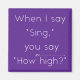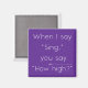 Ce drôle d'aimant dit "Quand je dis "Chanter", tu dis "Quelle hauteur ?" Avec un symbole 8va pour l'accent, parfait pour les chefs d'orchestre et les professeurs de musique.