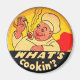 Qu'est-ce que Cookin ? Aimant frigo rétro à l'ancienne. Un chef ravi dévore cette phrase rétro des années 40, qui signifie "Quoi de neuf ?", "qu'est-ce qui se passe ?" Aimant de cuisine jaune, rouge et noir pour mettre en valeur votre cuisine.