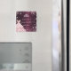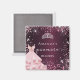 Pour un élégant Quinceañera, 15ème anniversaire. Une couleur arrière - plan bordeaux. Décorée de poussière de parties scintillant rose, d'une couronne de tiare et d'une robe. Personnalisez et ajoutez un nom, un âge et une date. Quinceañera est écrit avec un script de style moderne écrit à la main avec des swashes. Peut être utilisé à la fois comme faveurs de fête ou comme rappel Enregistrer la date pour vos invités.