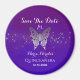 Moderne, élégant, unique, parties scintillant faux papillon argent en combinaison avec adorable violet bleu royal arrière - plan. Chic, fantasque, intemporelle Quinceanera enregistrer l'aimant d'invitation de date.