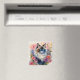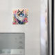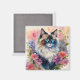 Magnet présente une délicate aquarelle d'un beau chat poupée de chiffon entouré de fleurs dans un portrait animal esthétique féminin. Le félin aux yeux bleus, moelleux, regarde de haut en bas dans ce tableau floral multicolore vibrant.