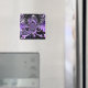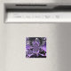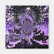 Violet et noir, Notes de musique avec des images de personnes faisant la fête lors d'un rassemblement.