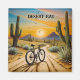 coucher de soleil tableau d'un vélo dans le désert entouré de cactus