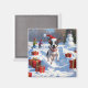 Aimant Rat Terrier Courir en neige avec Casquette de Noël