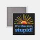 Sur la grande légende on peut lire "C'est le Soleil, Stupide !" tandis que les rayons du soleil explicitent les mots "Réchauffement climatique". Si vous êtes un soi-disant "Denier", c'est-à-dire sceptique sur le changement climatique causé par l'homme, portez ce design avec fierté !