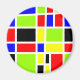 Un design abstrait géométrique à bords durs et coloré, qui rappelle peut-être un peu Mondrian.