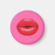 A design based on pop art of large red lips with lipstick supersized against a girly candy pink coloured background. The background colour can be customised and change d to any bright colour that would suit yout décor.