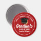 Cet aimant moderne rouge et blanc personnalisé pour diplômés de deuxième cycle présente une typographie blanche classe de votre nom de lycée ou de collège pour la classe de 2025. Customisez avec votre année de graduation sous l'écriture manuscrite noire chic et le casquette noir grad pour un grand gardien de diplôme personnalisé.
