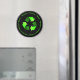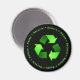 Aimant noir avec un symbole de recyclage vert à deux tons entouré de "Réduire - Réutiliser - Recycler" en texte vert extensible.