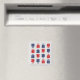 Un aimant avec un motif de boîtes et de texte "sortir de la boîte". Dans le rouge de sang et les couleurs navales sur un arrière - plan gris argenté pâle.