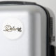 Queen Bee Refrigerator Magnet - Un aimant en or décoratif avec un mot cursif : Queen. Deux petites abeilles créées avec de la parties scintillant d'argent et d'or embellissent le texte. L'arrière - plan est blanc massif.