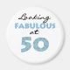 Texte noir et bleu clair "Look Fabulous at 50" sur Fabulous 50 T-shirts, tasses, mousepads, boutons, et autres objets qui font de grands cadeaux pour la personne de 50 ans, et ils peuvent être portés toute l'année!