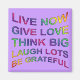 Spirit Text Design par EDDA Fröhlich | Règles de vie : vivre maintenant, donner de l'amour, penser grand, rire beaucoup, être reconnaissant