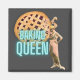Un design amusant pour les femmes qui aiment faire cuire des caractéristiques vintage costumé femme avec casquette fantaisie, néon "Baking Queen" texte et treillis croûte sur gris foncé arrière - plan