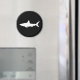 La silhouette d'un requin nageant aux motifs noir et blanc.