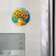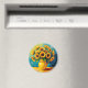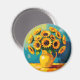 Un bel aimant avec une magnifique illustration d'un tournesol jaune dans un joli vase jaune fait dans un style impasto.
