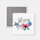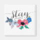 Un magnifique spray de fleurs aquarelle en bleu et rose avec des lettres argentées avec des mots motivants et inspirants "Restez positif". Design par Bohemian Girl.