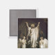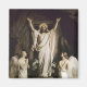 Jésus avec les bras tendus alors qu'il se tient devant la tombe ouverte. Les anges adorent de part et d'autre. Carl Bloch