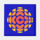 Ce logo a été créé par Burton Kramer, designer et artiste dont les œuvres font partie de la collection permanente de la Smithsonian Institution. Parfois appelé «la pizza » ou « l'ananas », le design moderniste présente au centre la lettre C, pour Canada. On peut lire dans un document institutionnel de la Société datant de 1974 que la forme globulaire du logo illustre les responsabilités internationales du diffuseur national. Le logo a été utilisé de 1974 à 1986. Plusieurs émissions spéciales ont marqué les années 1970 : la série de hockey Canada-URSS en 1972; les Jeux Olympiques de 1976 à Montréal et les Jeux du Commonwealth de 1978 à Edmonton, dont la Société est le diffuseur-hôte. En 1977, CBC/Radio-Canada conçoit et installe un système de diffusion à la Chambre des communes du Canada, à la demande du Président.