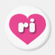 Cet aimant est doté d'un coeur rose chaud et vibrant contenant les lettres coques inférieures pleines d'audace, arrondies et blanches ri, une version ludique de l'abréviation de Rhode Island, l'état de l'océan.