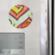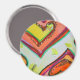 Détail de peinture de deux coeurs de la peinture "Laugh". Les coeurs sont jaune, orange, pêche, rose, magenta et rouge. Le support est aquarelle avec parties scintillant en verre. Cet article fait pour un grand cadeau de faveur fête. Customisez et ajoutez votre propre texte.