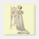 Regency Era, femme, s'habille devant la cour avant de regarder son verre