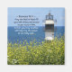 Un aimant personnalisé inspirant représente un phare noir et blanc avec de jolies fleurs jaunes et un arrière - plan bleu de l'océan et du ciel et présente Bible Verse Romains 15:13, "Que le Dieu de l'espérance vous remplisse de joie et de paix comme vous faites confiance en lui, afin que vous puissiez déborder d'espérance par la puissance de l'Esprit Saint."~