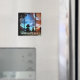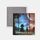 Un cadeau délicieux : aimant personnalisé avec une petite fille et son chaton sur une balançoire donnant sur un paysage imaginaire avec lune. Belle pour la Saint Valentin ou une autre occasion romantique ou douce.