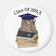 Une jolie photo d'une chouette portant une casquette de graduation et se tenant à côté d'une pile de livres, est présentée sur cet aimant rond pour la graduation. Avec le message "Classe de 20XX", vous pouvez changer l'année. Utilisez comme décoration ou offrez comme petit cadeau de gardien au diplômé de la famille!