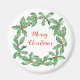 Aimant rond Holly Wreath de Noël personnalisé