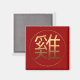 Symbole de coq doré avec un effet numérique en relief sur aimant carré rouge. Vous pouvez facilement ajouter du texte, le modifier et la couleur arrière - plan en cliquant sur le bouton personnaliser. Sac fourre-tout, artisanat et bien d'autres produits. Parfait pour le Nouvel An Chinois du Coq 2029 ou Anniversaire (personnes nées dans l'année Rooster). — "Les personnes nées dans ces plages de dates peuvent être considérées comme nées dans l'"Année du coq", tout en portant le signe élémentaire suivant : 26 janvier 1933 - 13 février 1934 Water Rooster, 13 février 1945 - 1er février 1946 Wood Rooster, 31 janvier 1955 7-17 février 1958 Fire Rooster, 17 février 1969 - 5 février 1970 Earth Rooster, 5 février 1981 - 24 janvier 1982 Metal Rooster, 23 janvier 1993 - 9 février 1994 Water Rooster, 9 février 28 janvier 2006 Wood Rooster, 28 janvier 2017 - 16 février 2018 Fire Rooster." Wikipédia