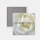 Aimant mariage rose blanc immaculé personnalisé avec vos noms et votre date.