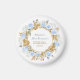 Un signe de bienvenue gracieux orné de roses bleu poussiéreux couleur douce et de délicats soupirs de respiration pour bébé, ajoutant une touche romantique et rêveuse à tout affichage de douche nuptiale.