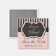 Ce Blush Pink, Cream, et Charcoal Grey Striped enregistrer la date magnétique correspond au faire-part de mariage ci-dessous. Le texte est entièrement personnalisable.