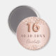 Élégant, classique, glamour et féminin, aimant de save the date pour un Sweet 16, fête des 16 ans. Fond dégradé rose gold et blush. Décoré de rose gold, de fausses paillettes, de scintillements. Personnalisez et ajoutez un nom. Le nom est écrit avec une police manuscrite moderne de couleur rose foncé. Le numéro 16 est écrit avec une police de caractères de style ballon.